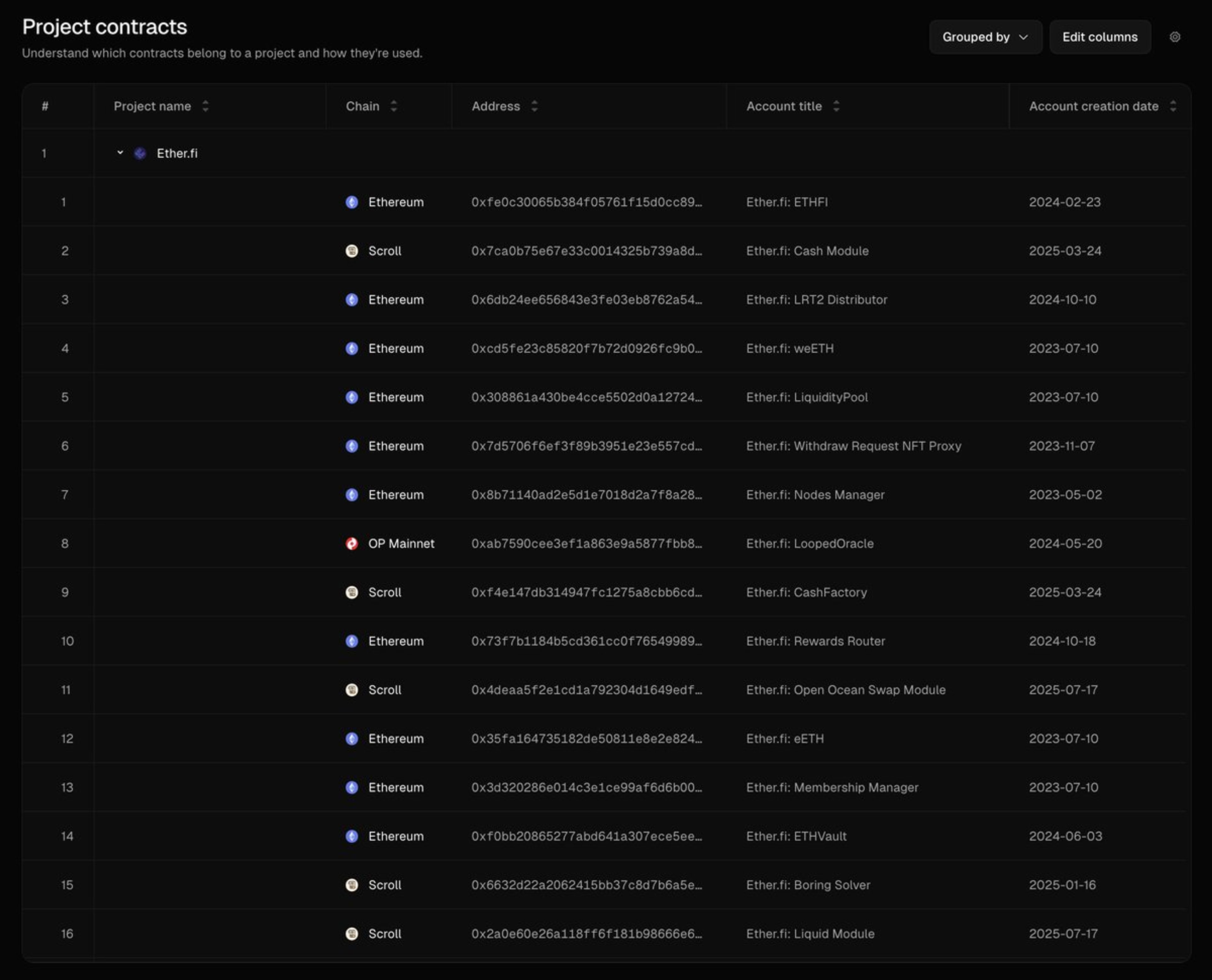 To start, the Ether.fi and Token Terminal teams worked together to build a labeled registry of Ether.fi's smart contracts.