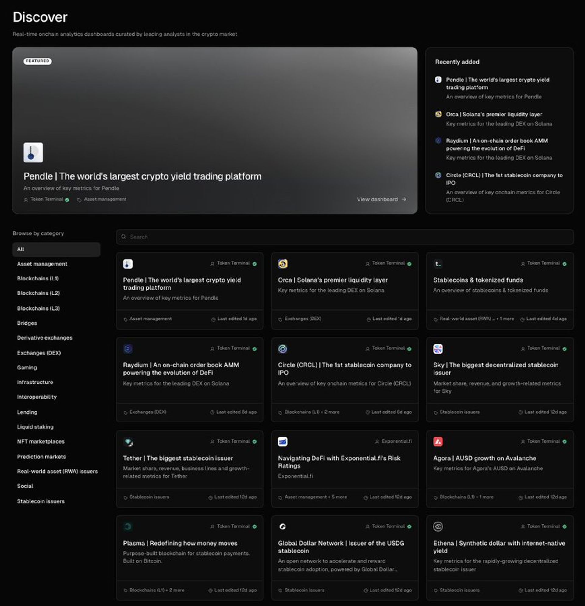 After the metric transformations, Pendle was listed on the asset management market sector dashboard on Token Terminal, and also featured on the recently launched Discover page.