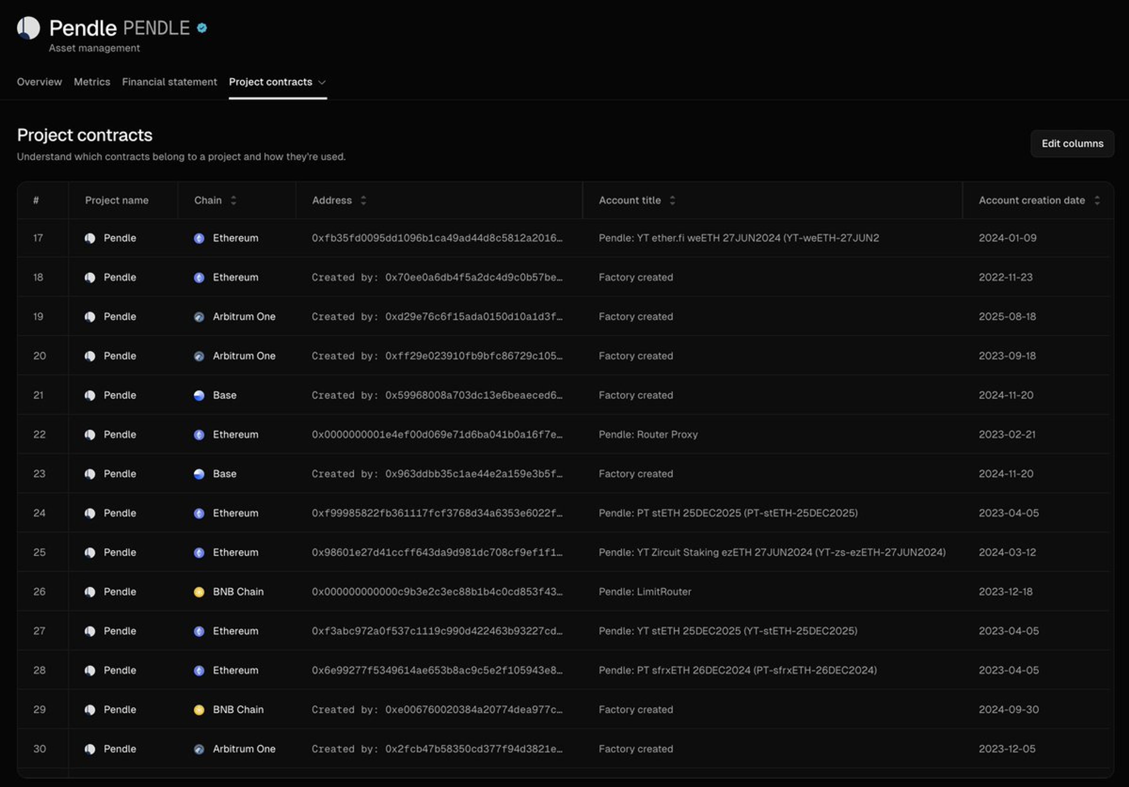 To start, the Pendle and Token Terminal teams worked together to build a labeled registry of Pendle’s smart contracts.