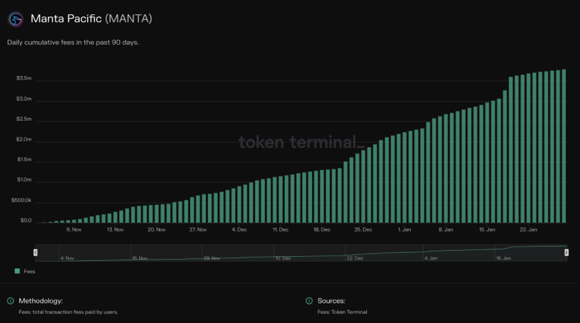 Manta Pacific makes money by charging a fee to users who interact with applications built on its L2 infrastructure.